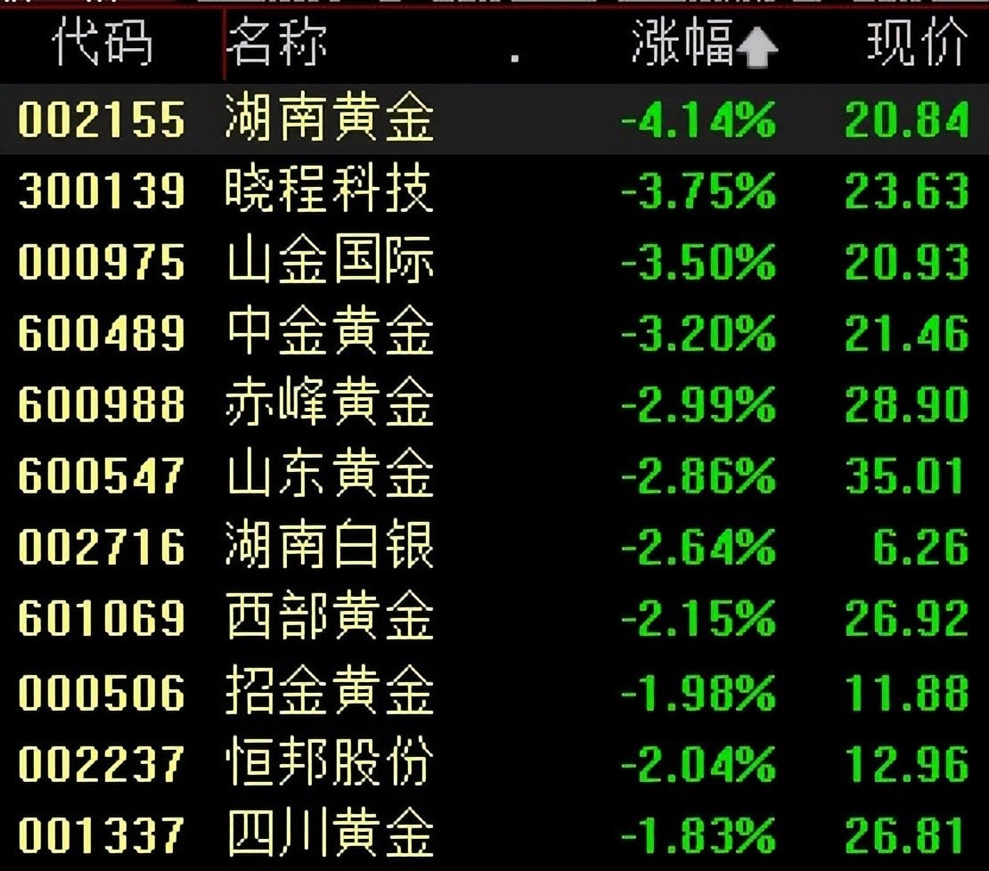 A股方面,贵金属板块领跌,概念股全线飘绿。截至发稿,湖南黄金跌超4%,晓程科技、山金国际、中金黄金跌超3%。