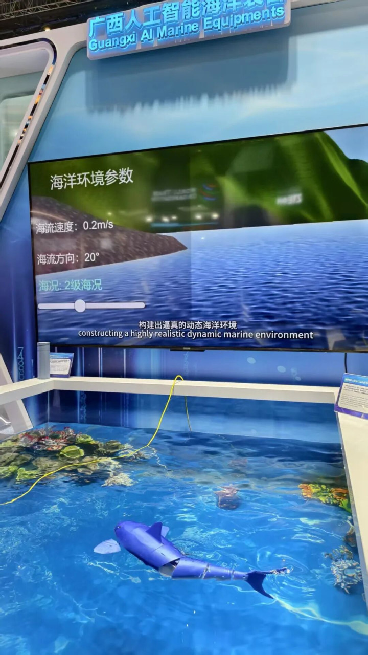 “我们公司成立于2024年4月,专注于研发自主型和仿生型水面及水下机器人。公司虽然年轻,但我们的机器人已经卖到了东盟国家。”刘君的介绍让记者颇为惊讶。“机器人集成了人工智能和自主导航技术,通过融合人工智能与海洋装备创新,深化技术创新与应用拓展。”