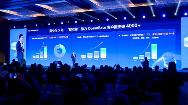 发布会上,OceanBase发布4.4一体化融合版本,首次将TP、AP与AI能力集成于单一内核,商用LTS版本将于2026年2月2日推出;同期开源了其首款AI原生混合搜索数据库seekdb,支持向量、全文、标量、GIS数据统一检索,兼容30+主流AI框架,开发者三行代码即可构建知识库、智能体等AI应用。