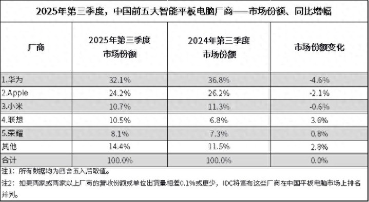 对于2025年Q3中国平板电脑出货量榜单,亓纪的想法是这样的:华为在国内市场确实太强了,在芯片性能处于劣势的情况下,不仅打败了国际具有苹果,还在市场份额上做到了遥遥领先。小米的成绩也很惊艳,平板电脑产品线暂停数年后重启,依旧能够进入国内前三和全球前五,这样的品牌确实很罕见。联想一直都是平板电脑榜单中的常客,感谢联想拯救者Y700的坚持,部分小新平板的性价比真的很香。