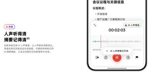 ColorOS16的AI功能不仅能在生活中带来助力,在职场、学习场景中也能成为用户提升效率的生产力工具。全新录音应用支持AI人声增强,让人声更加清晰突出,并支持实时分角色转写,边录边看,录音结束后还能自动生成标题,并提供多种格式的AI摘要模板。在输入法、文本选择器、文档、便签等任意文案写作场景中,用户都可以随时调用AI自由写,一句话生成PPT、Excel表格或思维导图,真正的生产力神器。