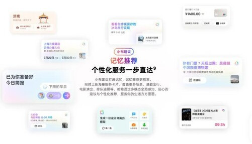 在日常生活中,小布也会基于记忆内容为用户提供贴心建议:,TA会在你购买完火车票或机票后,主动将之前保存的旅行攻略合集推荐给你;当你路过曾经收藏过的宝藏小店附近时,它也会及时推送提醒。此外,每天早晨,它还会基于你的个人信息和喜好,为你推送专属的信息内容,包含天气、日程待办,甚至提供AI简报。